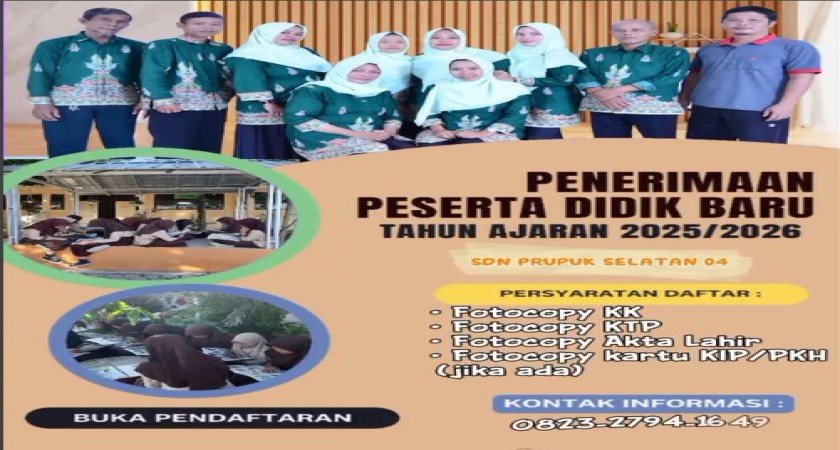 Pendaftaran Siswa Baru SD Negeri Prupuk Selatan 04 msih Dibuka lho! Sekolah Penggerak dengan fasilitas lengkap, guru ramah, dan lingkungan belajar menyenangkan!Buruan daftarkan anak And